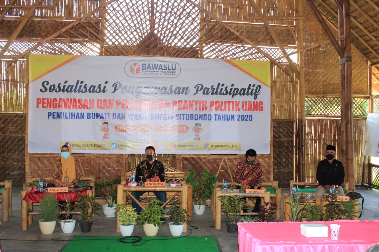 situbondo.bawaslu.go.id - Badan Pengawas Pemilihan Umum (Bawaslu) Kabupaten Situbondo menggelar Sosialisasi Pengawasan Partisipatif Pengawasan dan Pencegahan Praktik Politik Uang pada Pemilihan Bupati dan Wakil Bupati Situbondo Tahun 2020, (19/11/2020).