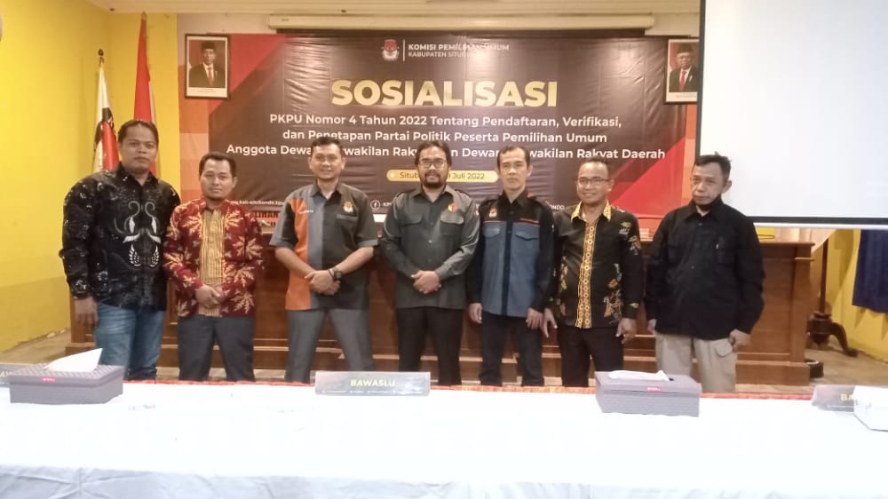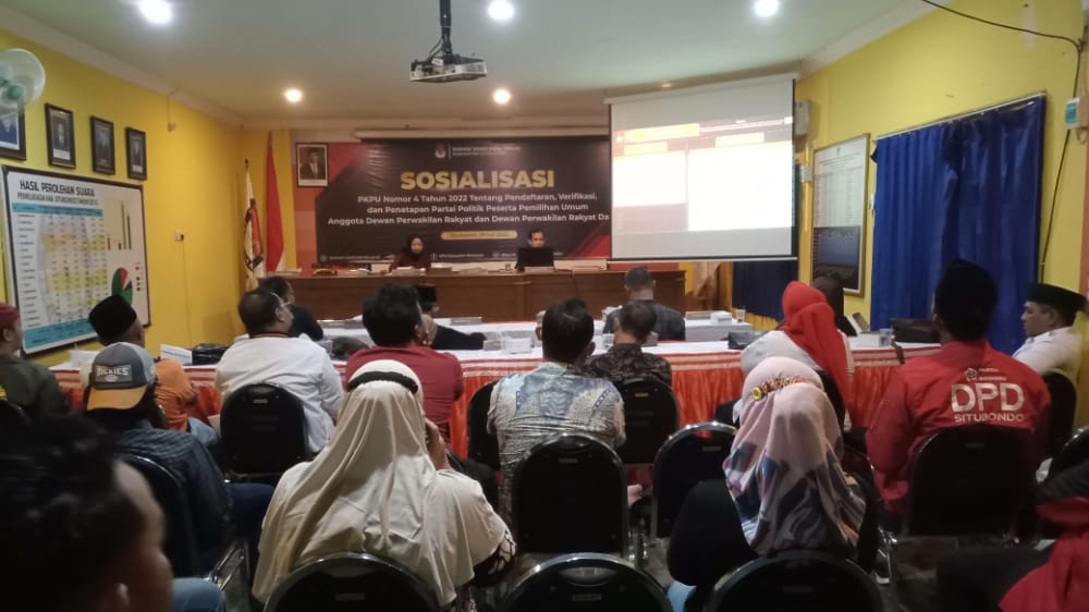 KPU Kabupaten Situbondo melaksanakan Sosialisasi Peraturan Komisi Pemilihan Umum Nomor 4 Tahun 2022 tentang Pendaftaran, Verifikasi, dan Penetapan Partai Politik Peserta Pemilihan Umum Anggota Dewan Perwakilan Rakyat dan Dewan Perwakilan Rakyat Daerah bertempat di Ruang Media Center Kantor KPU Kabupaten Situbondo (29/07/2022).
