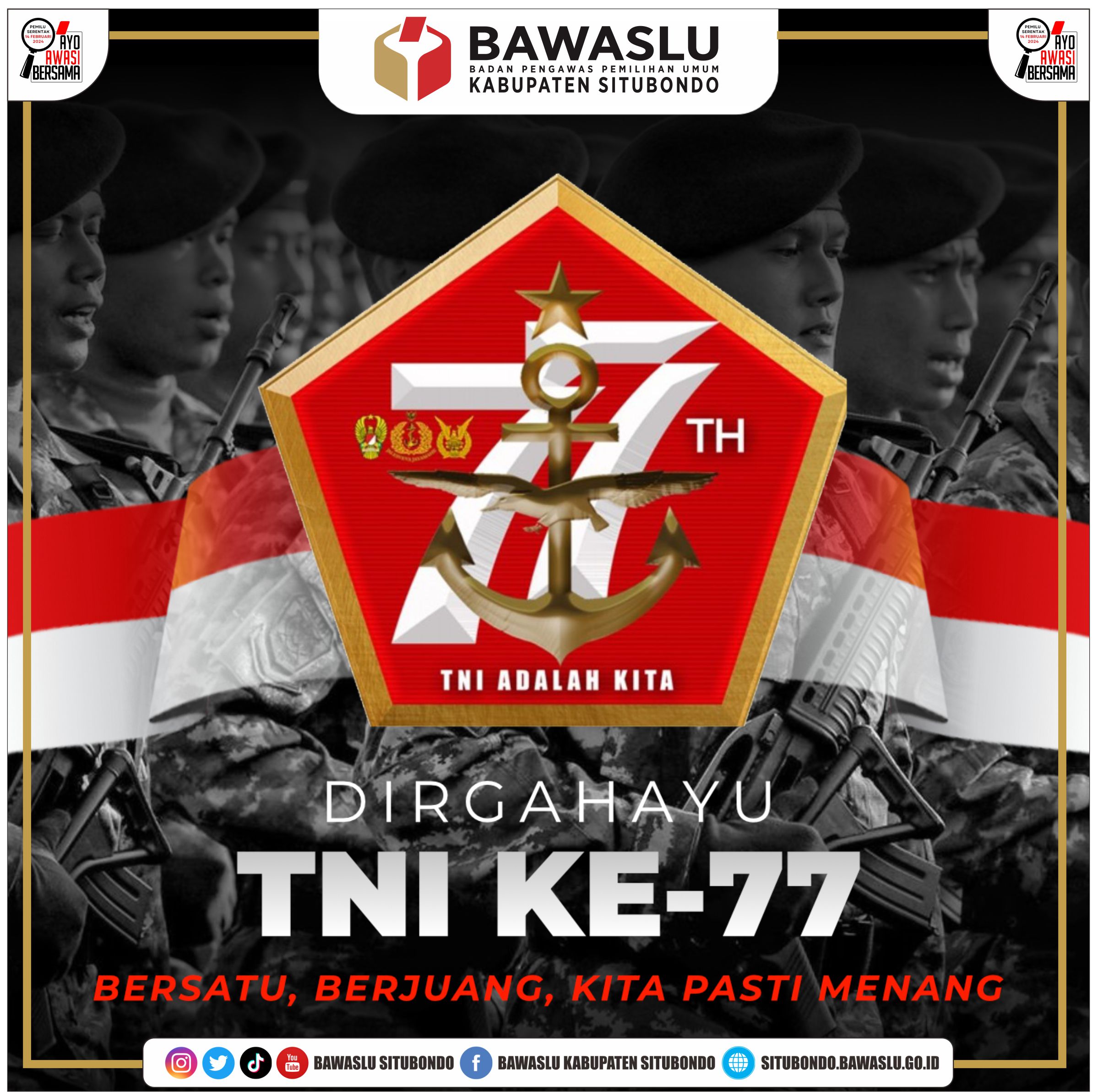 DIRGAHAYU TNI KE-77 humas | Rabu, Oktober 5, 2022 - 05:10 Tag Berita Share Berita Terkini humas Kamis, Desember 4, 2025 - 16:46 Bawaslu Situbondo Hadiri Rapat Koordinasi Persiapan Pleno PDPB Triwulan IV di KPU Situbondo humas Senin, Desember 1, 2025 - 10:11 Bawaslu Kabupaten Situbondo Peringati Hari KORPRI ke-54 dengan Upacara Khidmat humas Jumat, November 28, 2025 - 16:52 Bawaslu Jatim Gelar Rapat Koordinasi Penyusunan Program Kerja Divisi Tahun 2026 Lihat Lainnya