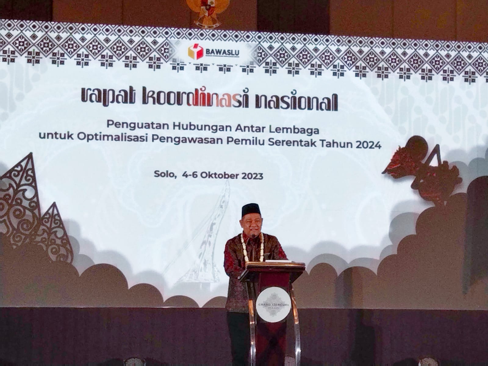 Bawaslu Kabupaten Situbondo - Koordinator Divisi Pencegahan, Partisipasi Masyarakat dan Hubungan Masyarakat Bawaslu Kabupaten Situbondo mengikuti Rapat Koordinasi Nasional (Rakornas) Penguatan Hubungan Antar Lembaga untuk Optimalisasi Pengawasan Pemilu Serentak Tahun 2024 yang dilaksanakan oleh Bawaslu RI di Grand Mercure Solo Baru Jl. Ir. Soekarno, Dusun II, Madegondo, Kec. Grogol, Kabupaten Sukoharjo, Jawa Tengah.