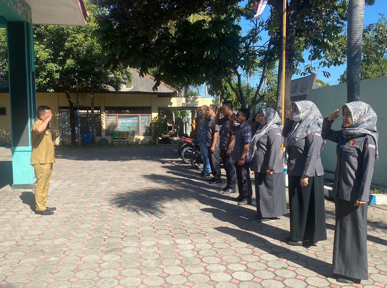 Pelaksanaan apel rutin Pimpinan, Koordinator Sekretariat dan Jajaran staf di lingkungan Bawaslu Kabupaten Situbondo. Senin, 12/09/2022