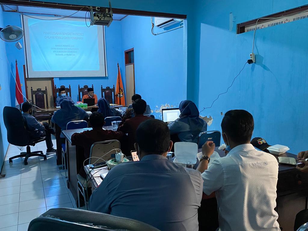 Acara dilanjut dengan pemaparan materi oleh Bapak samsul hidayat (Divisi Hukum dan Pengawasan KPU Kabupaten Situbondo) mengenai penyelesaian sengketa proses dalam pemilu dan pemilihan.