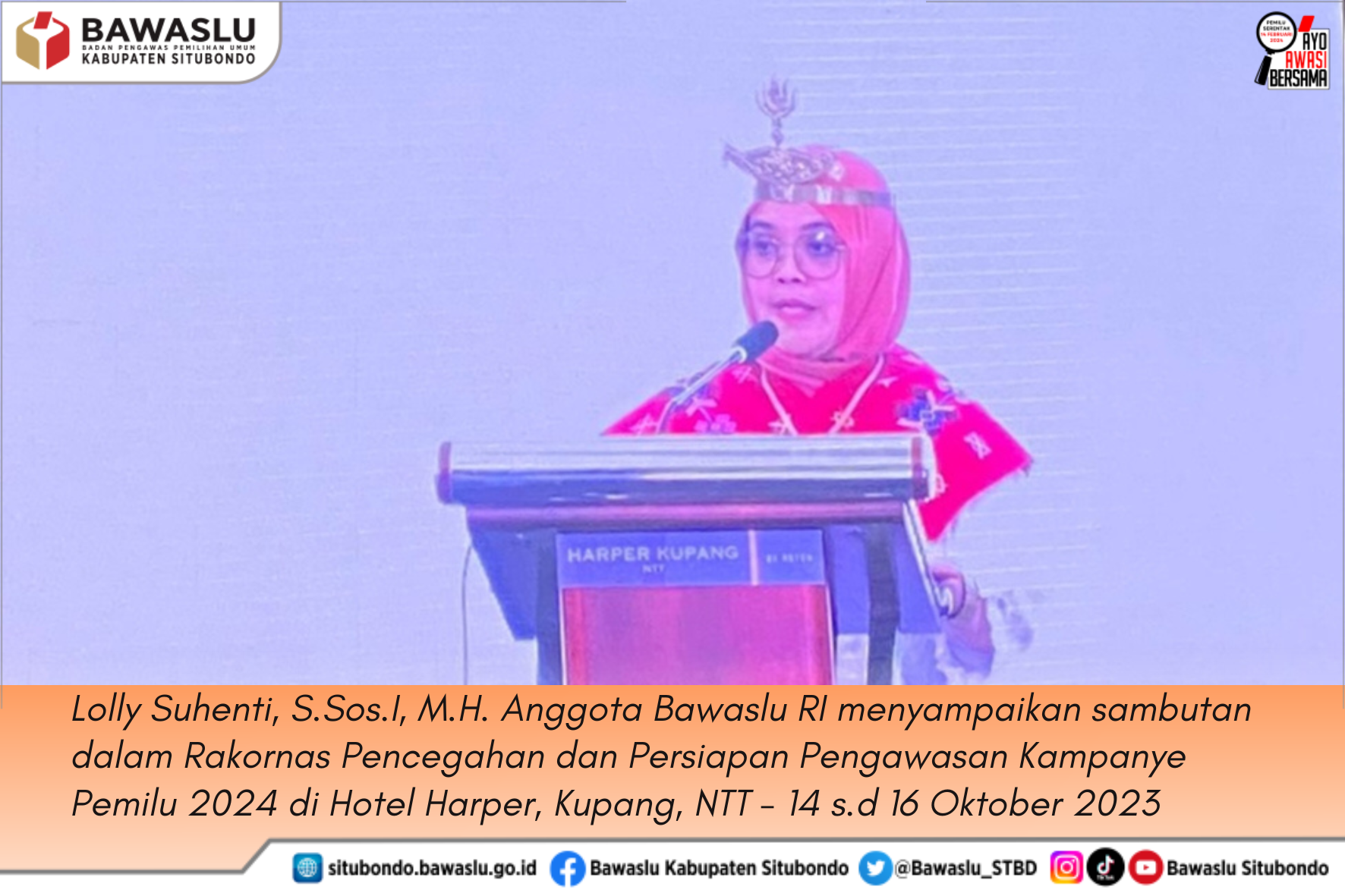 Kupang-Bawaslu Kabupaten Situbondo - Bawaslu RI melakukan Rapat Koordinasi Nasional Pencegahan dan Persiapan Pengawasan Kampanye Pemilihan Umum Tahun 2024 pada 14 s.d 16 Oktober 2023 yang dilaksanakan di Hotel Harper Kupang-Nusa Tenggara Timur (NTT).